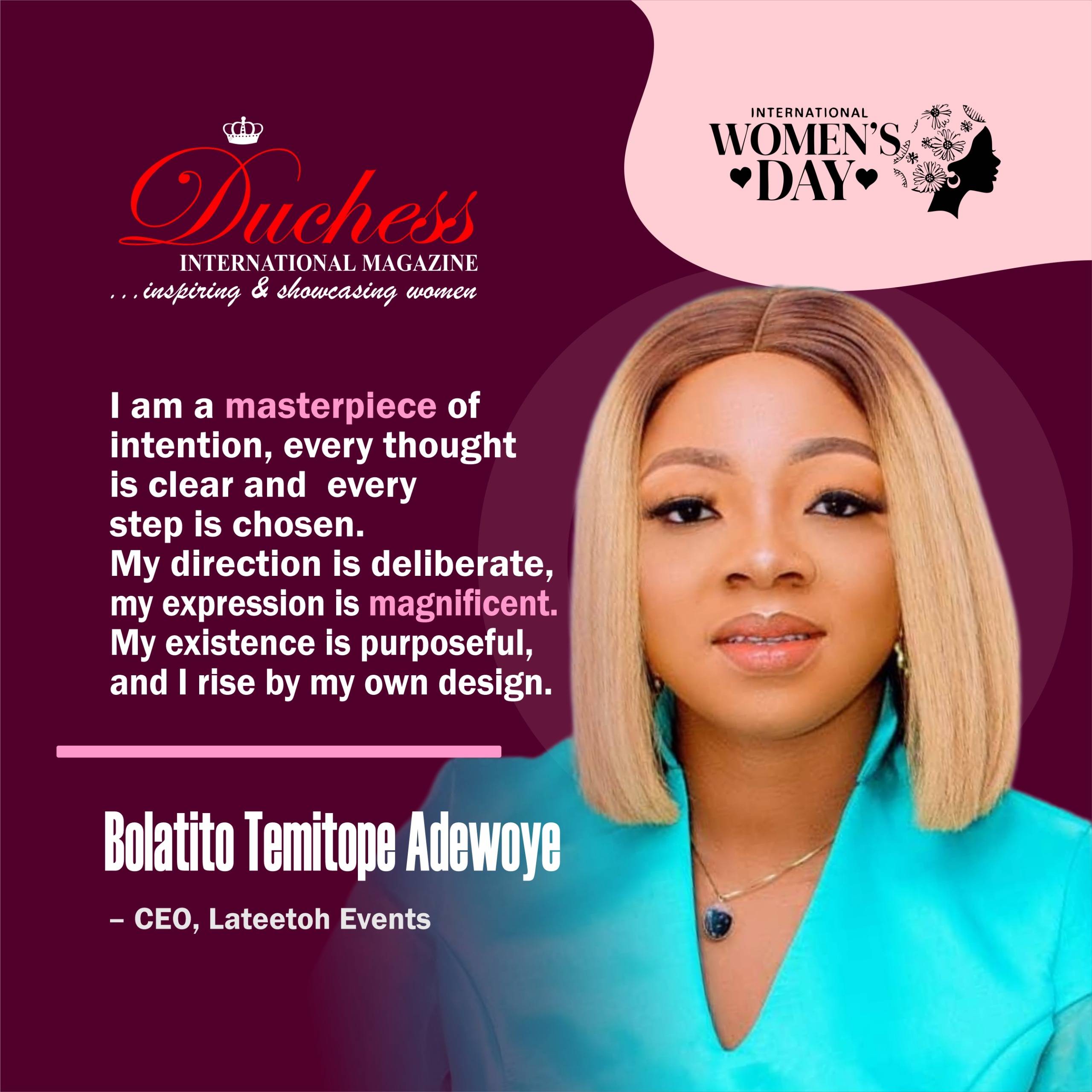 In celebration of her remarkable leadership, entrepreneurial achievements, and enduring contributions to community development, Duchess International Magazine honours Bolatito Temitope Adewoye and extends warm wishes for a distinguished International Women’s Day.