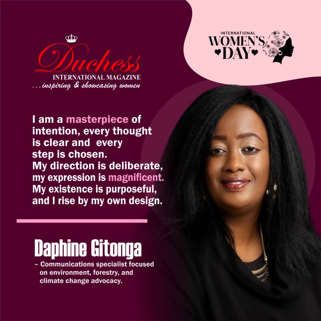 In celebration of her professional contributions to sustainability communication and development advocacy, Duchess International Magazine honours Daphine Gitonga and extends warm wishes for a distinguished International Women’s Day.