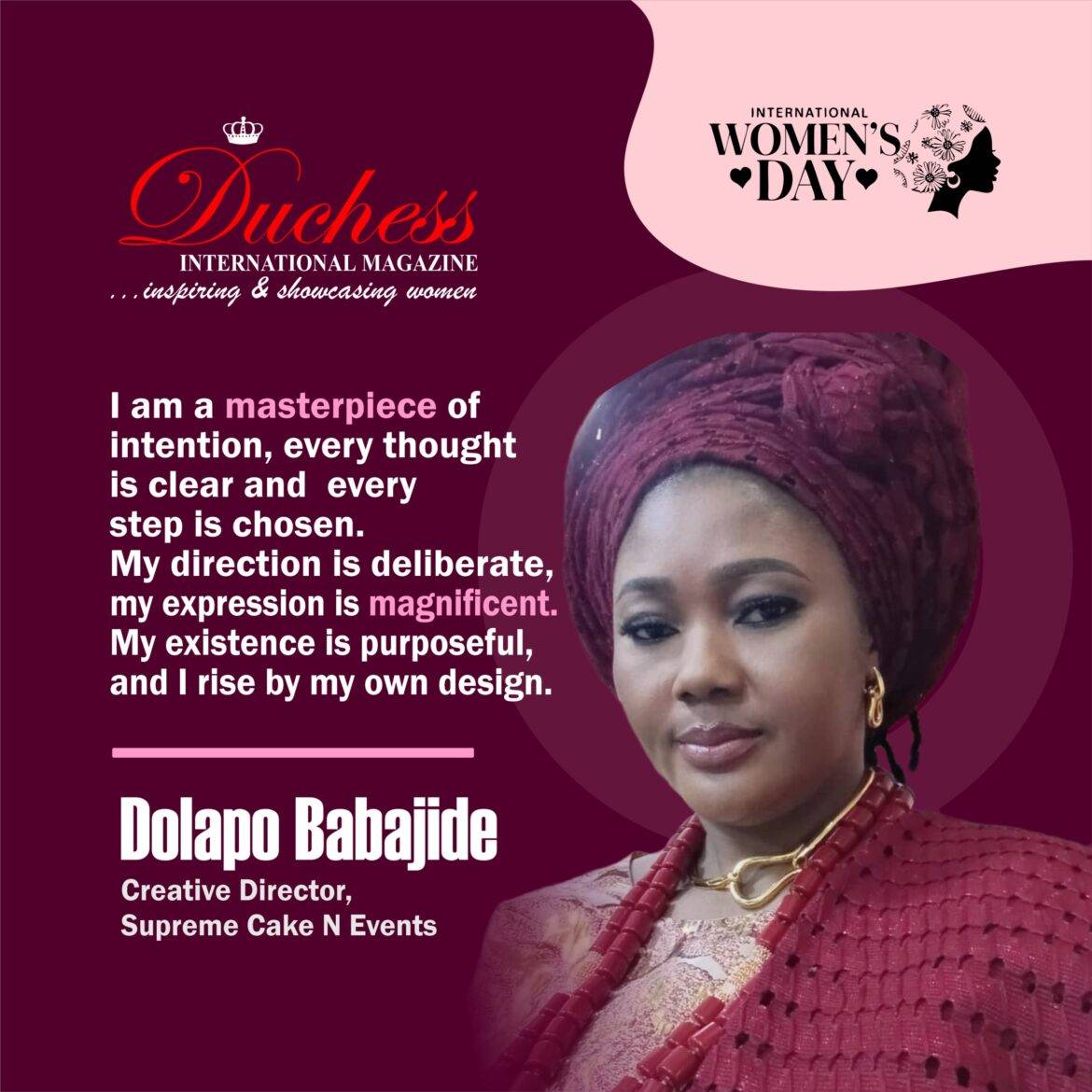 In celebration of her remarkable leadership, professional achievements, and enduring contributions to the creative and events industry, Duchess International Magazine honours Dolapo Babajide and extends warm wishes for a distinguished International Women’s Day.
