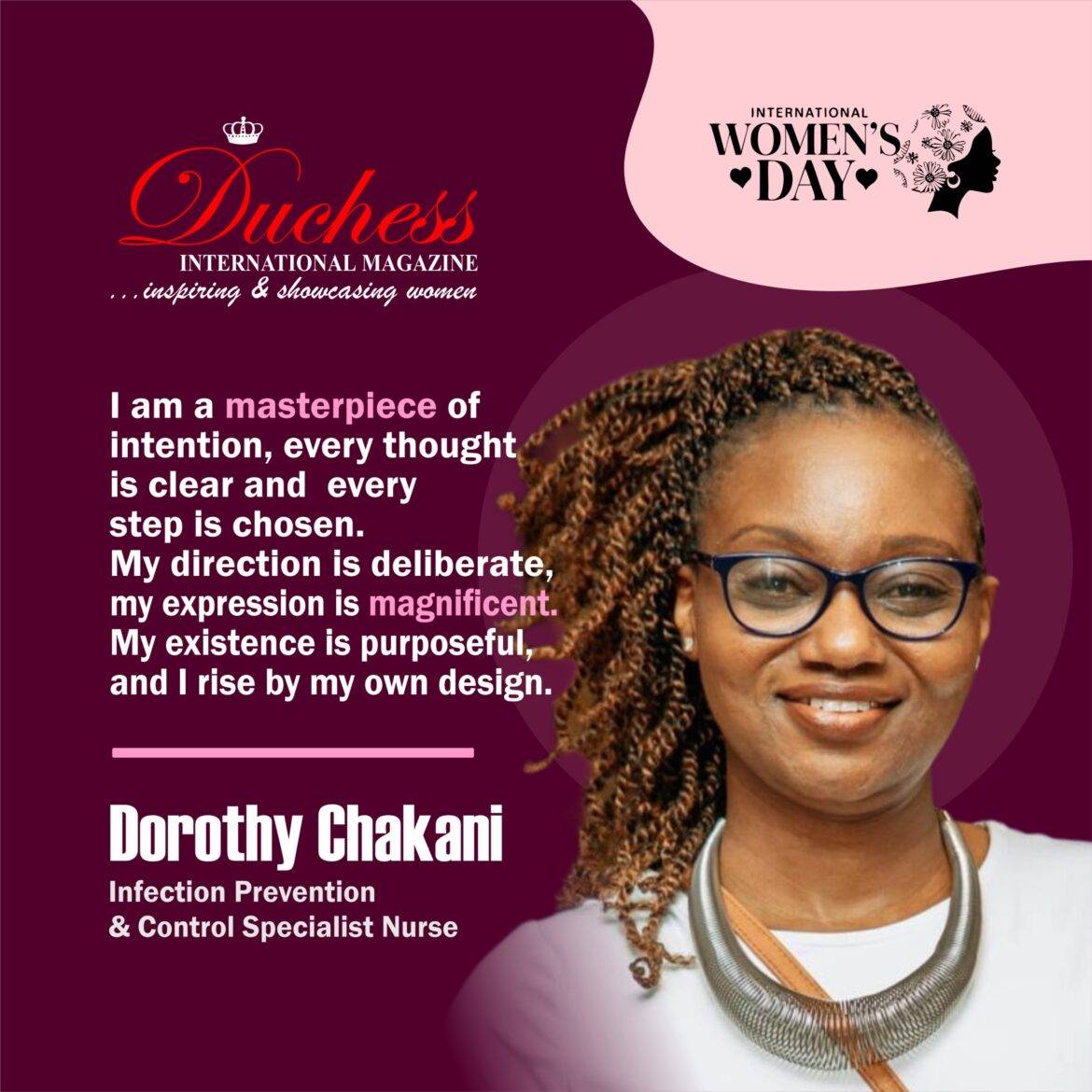 In celebration of her remarkable leadership, professional achievements, and enduring contributions to healthcare safety and community well-being, Duchess International Magazine honours Dorothy Chakani and extends warm wishes for a distinguished International Women’s Day.
