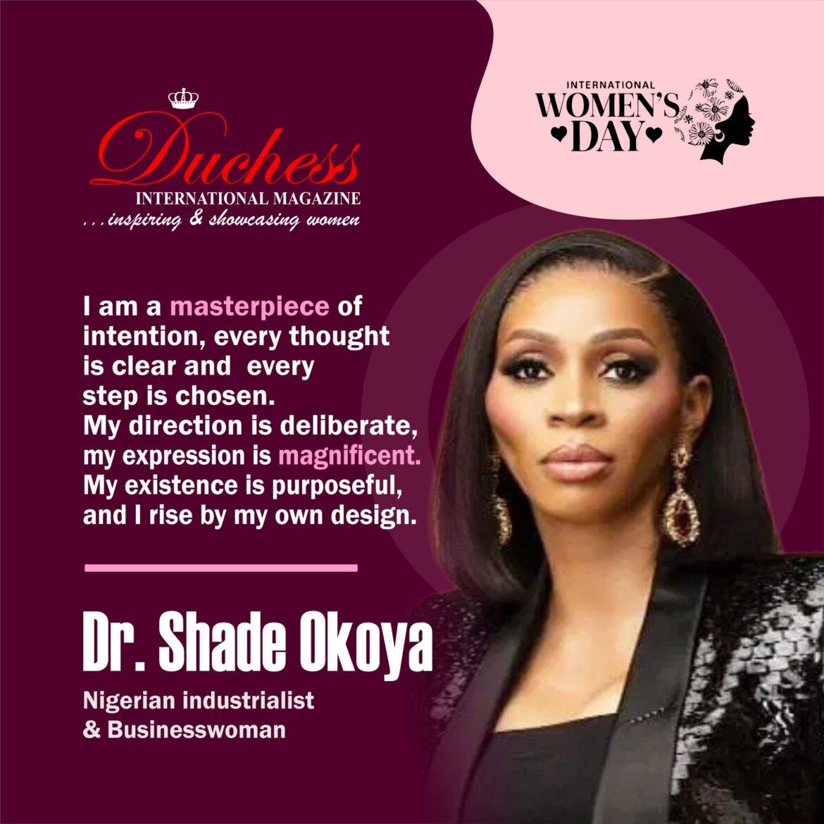 In recognition of her remarkable contributions to industry, entrepreneurship, and philanthropy, Duchess International Magazine honours Dr. Shade Okoya, celebrating her exceptional leadership, enduring influence, and commitment to empowering others.
