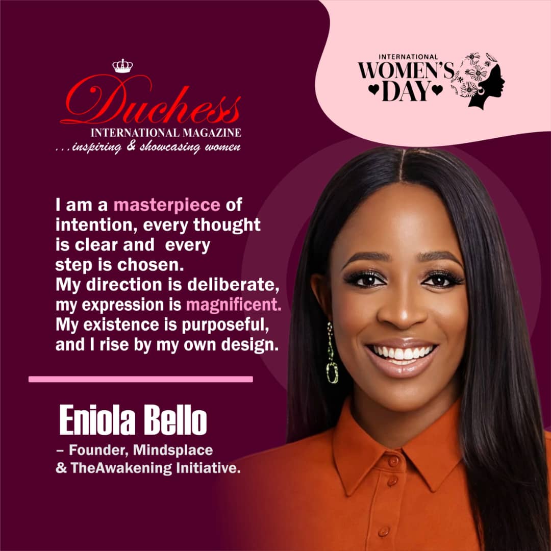 In celebration of her remarkable leadership and the transformative difference she continues to make across mental health, youth empowerment, and peacebuilding, Duchess International Magazine honours Eniola Bello and extends warm wishes for a distinguished International Women’s Day.